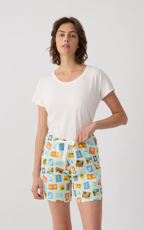 MINERVA Μακρύ σορτς από 100% βαμβάκι εξαιρετικής ποιότητας με εντυπωσιακό τύπωμα all over. Διαθέτει ελαστική μέση και διακοσμητικό κορδόνι για άνετη και σταθερή εφαρμογή. Η δροσερή και απαλή υφή του το καθιστά ιδανικό για χαλάρωση στο σπίτι, ενώ μπορεί να συνδυαστεί εύκολα με τοπ και φανελάκια από τις συλλογές MINERVA για ένα ολοκληρωμένο σύνολο.