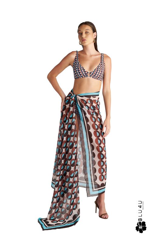 BLU4U, γυναικείο παρεό, σε φανταστική απόχρωση εμπριμέ. Βρείτε στο site μας τα αντίστοιχα μαγιό που μπορούν να συνδυαστούν με το παρεό αυτό.