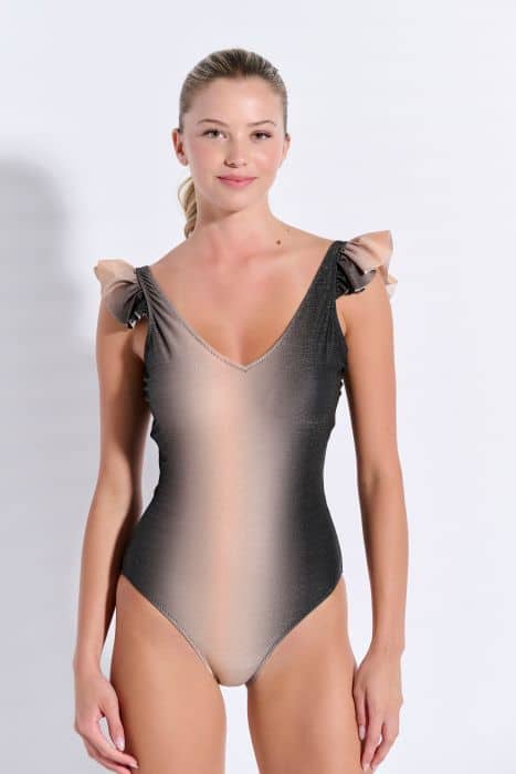 Bilitis μαγιώ γυναικείο ολόσωμο με ρομαντική πινελιά το βολάν με απαλή κίνηση και κομψότητα.