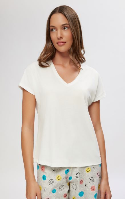 Minerva μονόχρωμη γυναικεία μπλούζα με ζαπονέ μανίκι & V λαιμόκοψη, από 50% βαμβάκι και 50% TENCEL™ Modal ύφασμα.