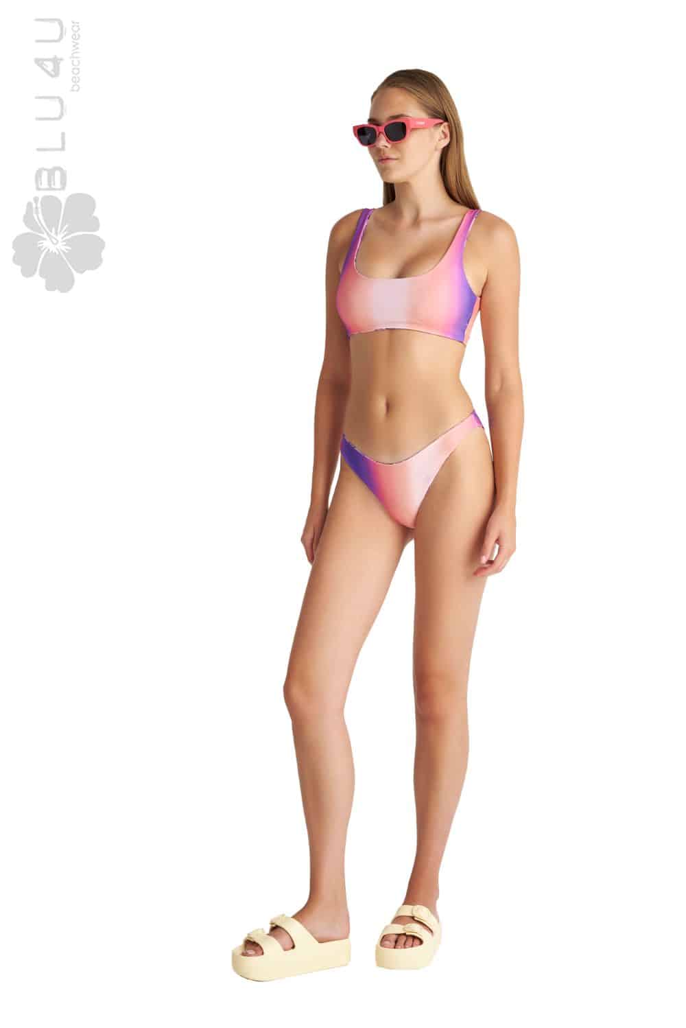 BLU4U μαγιό κάτω μέρος, στυλ μπουστάκι διπλής όψεως, που μπορεί να φορεθεί με δύο διαφορετικά σχέδια. Βρείτε το σετ κάτω μέρος του, το οποίο είναι και αυτό διπλής όψεως, στην ιστοσελίδα μας