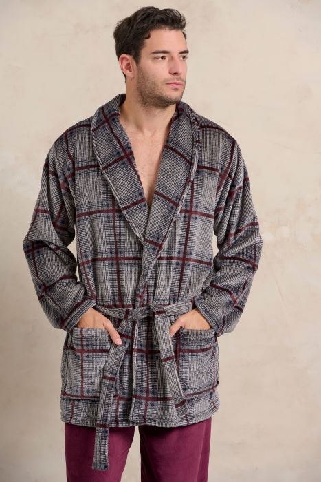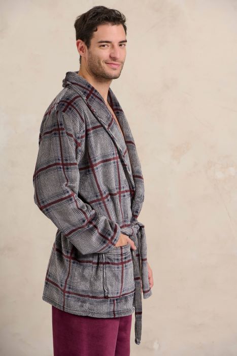Jeannette ανδρική ρόμπα σταυρωτή σε φανταστική καρό απόχρωση. Έχει φανταστική εφαρμογή και προσδίδει άνεση και στυλ.