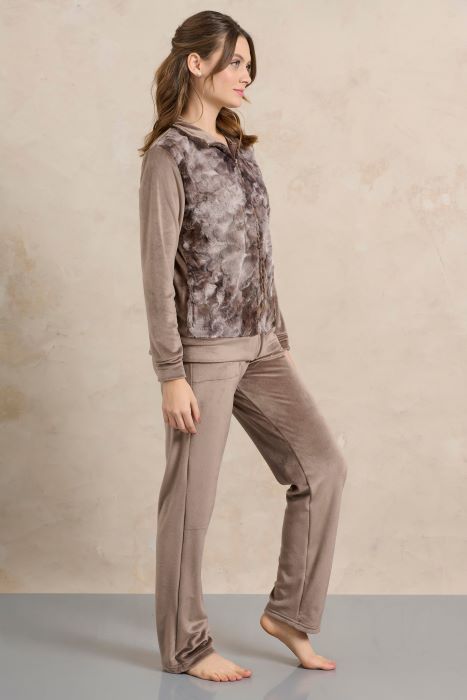 Jeannette γυναικεία φόρμα με γούνα και βελούδο σε φανταστικές αποχρώσεις. Έχει φανταστική εφαρμογή και προσδίδει άνεση και στυλ.