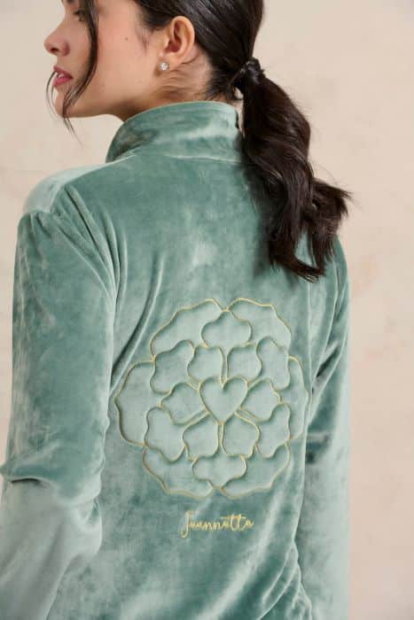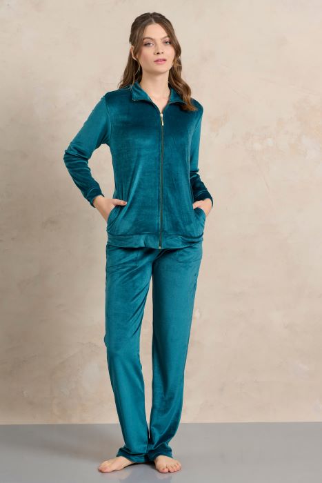 Jeannette γυναικεία φόρμα με κέντημα 3D με βελούδο σε φανταστικές αποχρώσεις. Έχει φανταστική εφαρμογή και προσδίδει άνεση και στυλ.