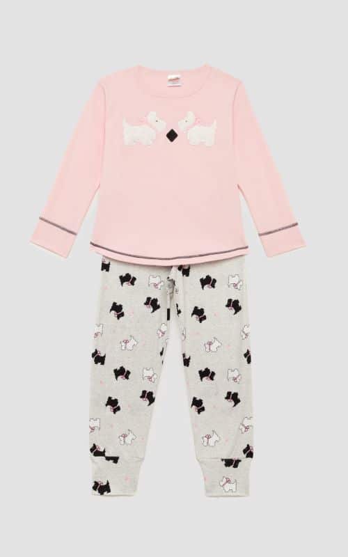 Minerva Παιδική χειμερινή πυζάμα, από 100% βαμβάκι υψηλής ποιότητας. Το σετ περιλαμβάνει μπλούζα με κέντημα στο στήθος και παντελόνι με μπάσκες στα τελειώματα.