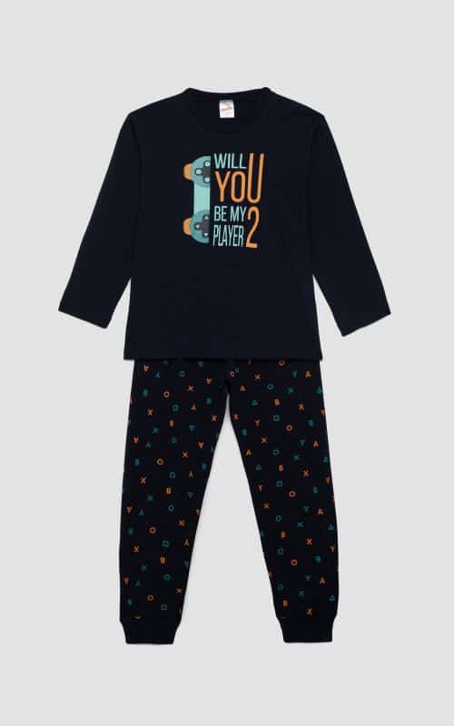 Minerva Παιδική χειμερινή πυζάμα, από 100% βαμβάκι υψηλής ποιότητας, με συνδυασμούς τύπωμα all over και μονόχρωμο. Το σετ περιλαμβάνει μπλούζα με έξτρα τύπωμα στο στήθος και παντελόνι με μπάσκες στα τελειώματα.