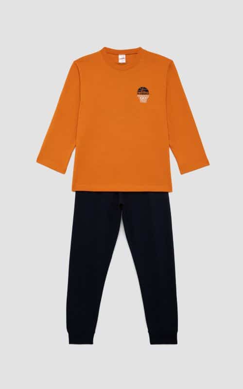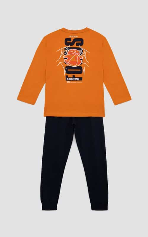 Mineva Παιδική χειμερινή πυζάμα, από 100% βαμβάκι υψηλής ποιότητας. Το σετ περιλαμβάνει μπλούζα με έξτρα τύπωμα μπροστά και πίσω στην πλάτη και παντελόνι με μπάσκες στα τελειώματα.