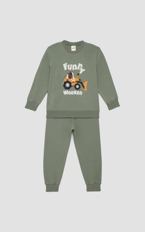Minerva Βρεφική χειμερινή πυζάμα, από 100% βαμβάκι υψηλής ποιότητας. Το σετ περιλαμβάνει μπλούζα με έξτρα τύπωμα στο στήθος και παντελόνι με μπάσκες στα τελειώματα.