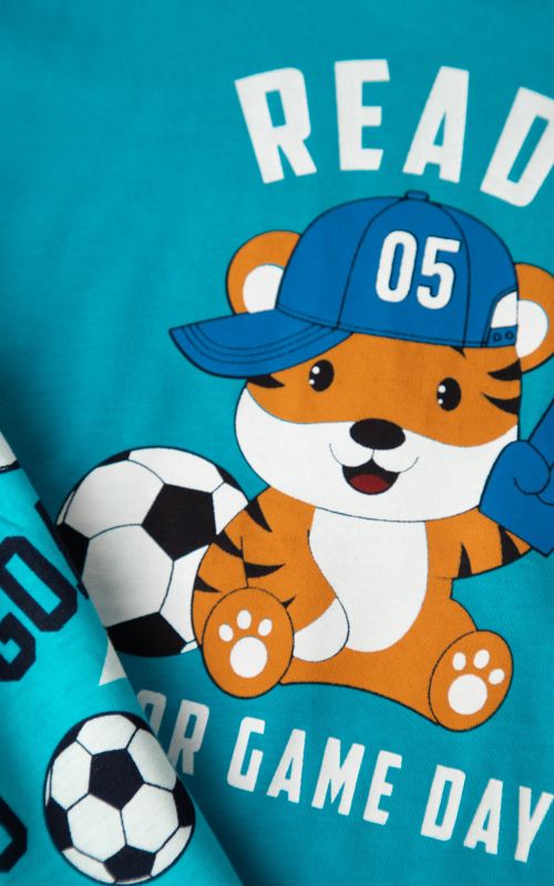 MINERVA Βρεφικό σετ πυζάμας για αγόρι από 100% βαμβάκι εξαιρετικής ποιότητας, ιδανικό για άνετο και ξεκούραστο ύπνο. Το σετ αποτελείται από κοντομάνικο τοπ με τύπωμα μπροστά και σορτς με all-over τύπωμα, προσφέροντας άνετη εφαρμογή και ελευθερία κινήσεων. Το απαλό και διαπνέον βαμβακερό ύφασμα εξασφαλίζει άνεση και δροσερή αίσθηση σε κάθε χρήση.