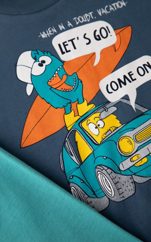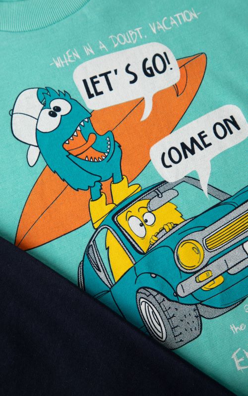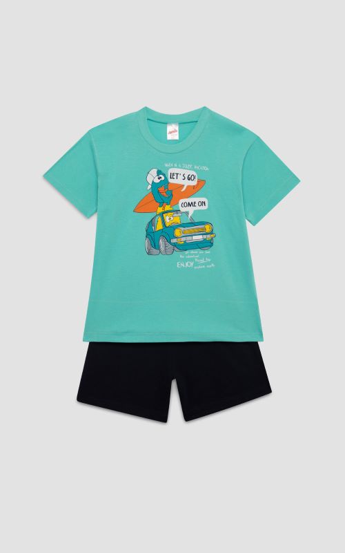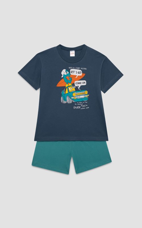 MINERVA Παιδικό σετ πυζάμας για αγόρι από 100% βαμβάκι εξαιρετικής ποιότητας, ιδανικό για άνετο και ξεκούραστο ύπνο. Το σετ αποτελείται από κοντομάνικο τοπ με τύπωμα μπροστά και άνετο σορτς, προσφέροντας χαλαρή εφαρμογή και ελευθερία κινήσεων. Το ελαφρύ βαμβακερό ύφασμα χαρίζει φυσική απαλότητα και άνεση για καθημερινή χρήση.