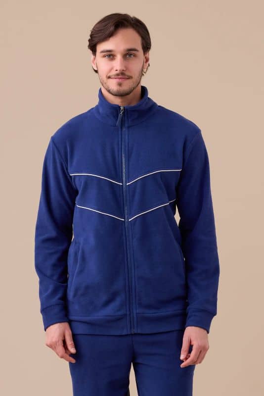 Noidinotte Ανδρικό ξυρισμένο κοστούμι από μικροφλίς, μονόχρωμο τοπ με ψηλή λαιμόκοψη και φερμουάρ και μονόχρωμο παντελόνι με μανσέτες.