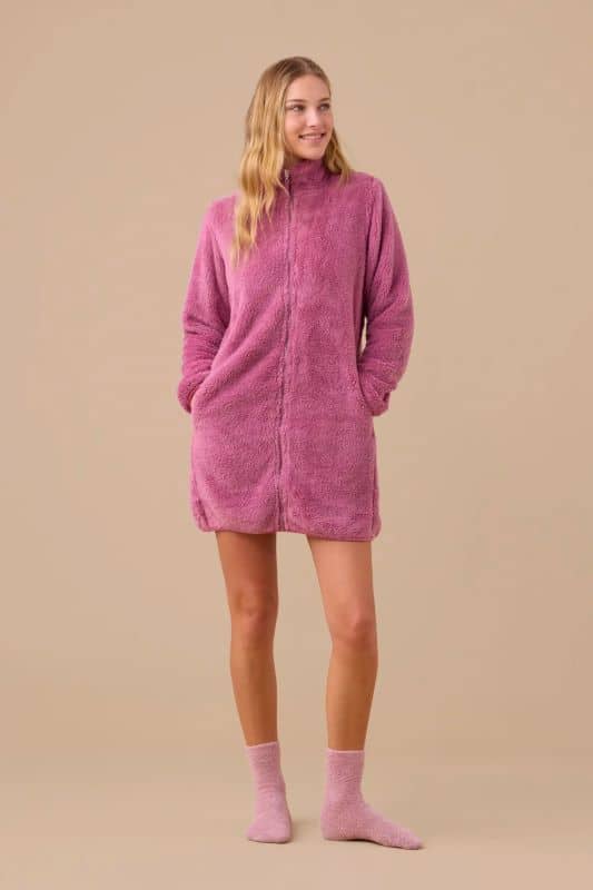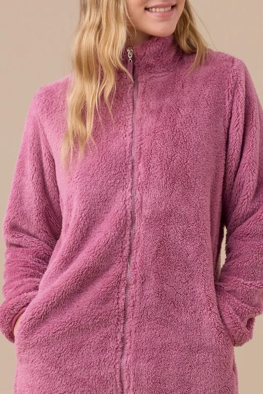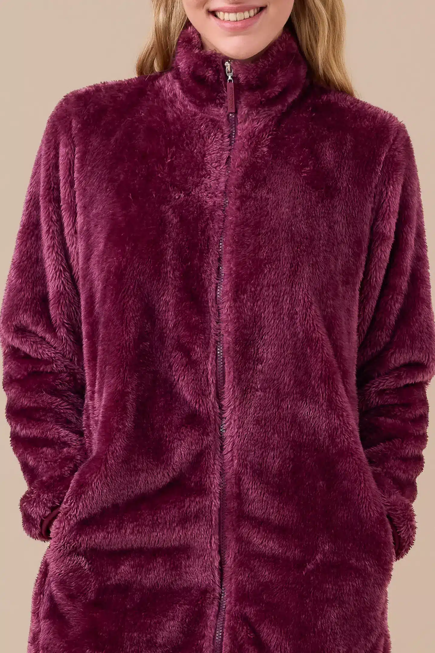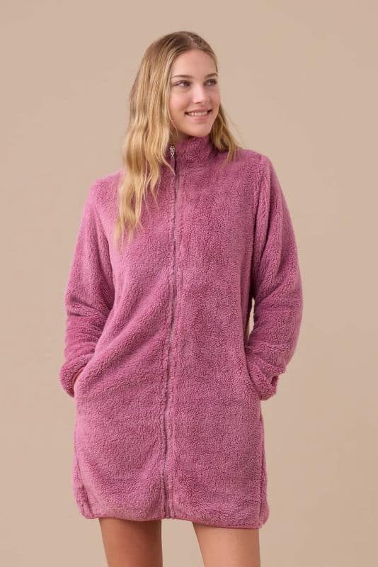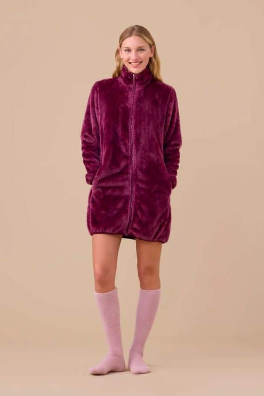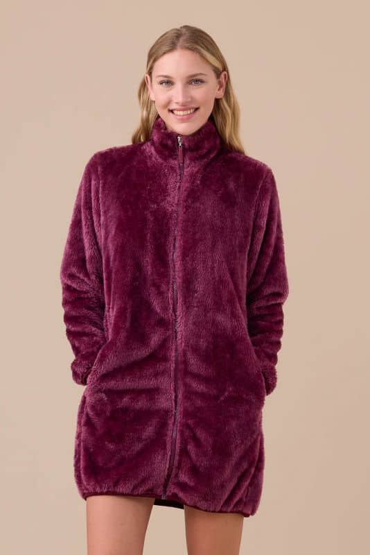 Noidinotte Γυναικεία μονόχρωμη ρόμπα από τεχνητή γούνα με φερμουάρ και τσέπες.