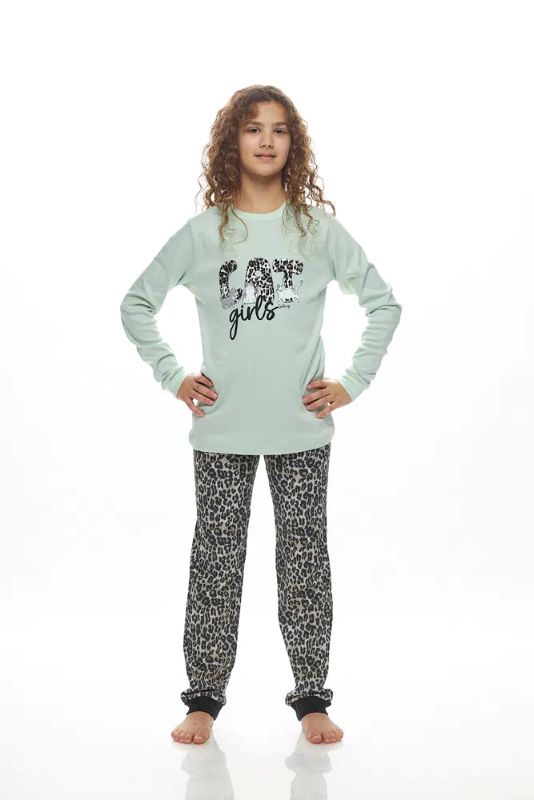 GALAXY παιδική πυτζάμα. Για κοριτσάκια που λατρεύουν τις γάτες και το στιλ με… νάζι! Αυτή η πιτζάμα είναι ιδανική για μικρές που θέλουν να ξεχωρίζουν – ακόμα και στον ύπνο! 👕 Η μπλούζα, διαθέσιμη σε ροζ ή μέντα απόχρωση, εντυπωσιάζει με την παιχνιδιάρικη στάμπα “Cat Girls“, γεμάτη γλυκύτητα και χαρακτήρα.👖 Το λεοπάρ παντελόνι προσθέτει μια μοντέρνα, wild πινελιά που απογειώνει το look – γιατί ποιος είπε ότι μια πιτζάμα δεν μπορεί να είναι fashion; 🧵 100% βαμβακερή σύνθεση – απαλό, φιλικό προς το δέρμα και αναπνεύσιμο ύφασμα, ιδανικό για ήρεμο και άνετο ύπνο όλη τη νύχτα 🛌🌙