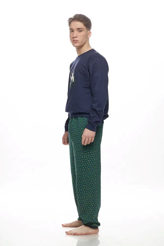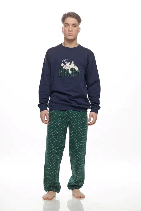 GALAXY ανδρική πυτζάμα. Ανακαλύψτε τη ζεστασιά και τη φαντασία που φέρνει αυτή η ανδρική χειμερινή βαμβακερή πυτζάμα, με στάμπα “HONEY” στο επάνω μέρος και παντελόνι με μικρά σχεδιάκια από μέλι. Ένα σύνολο που προσφέρει όχι μόνο άνεση, αλλά και μια παιχνιδιάρικη διάθεση στις βραδινές σας στιγμές. Η μακρυμάνικη μπλούζα διαθέτει εντυπωσιακή στάμπα με τη λέξη “HONEY” στο στήθος, σε μοντέρνο και νεανικό στυλ. Το παντελόνι ξεχωρίζει με τα διακριτικά σχεδιάκια από βαζάκια μελιού ή μελισσούλες, δίνοντας μια ιδιαίτερη ταυτότητα στο σύνολο. Το απαλό, βαμβακερό ύφασμα προσφέρει άνεση και ζεστασιά καθ’ όλη τη διάρκεια του χειμώνα.