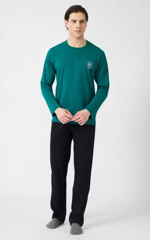 Ανδρική πυζάμα 100% βαμβακερή MINERVA, μονόχρωμη με διακριτικό σχέδιο στο επάνω μέρος και σχέδιο στο πίσω μέρος.