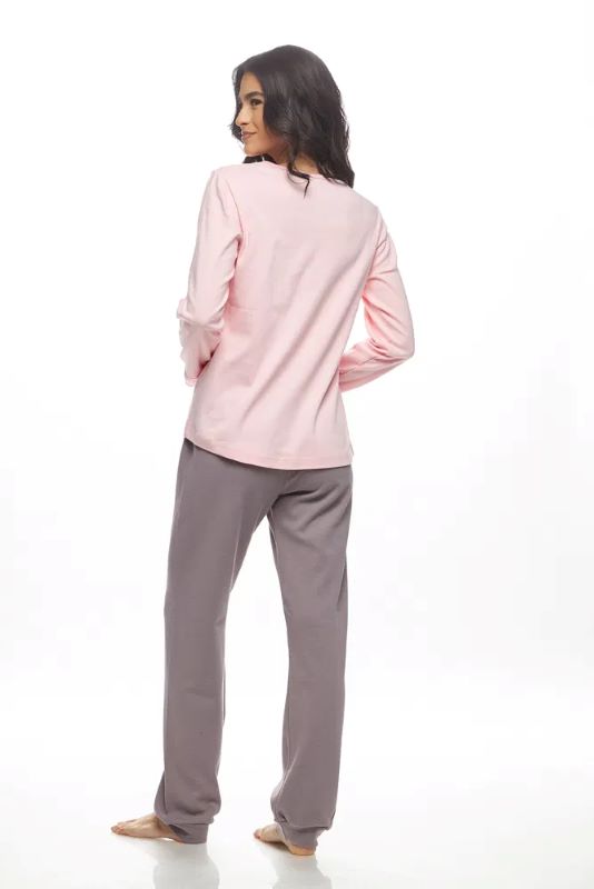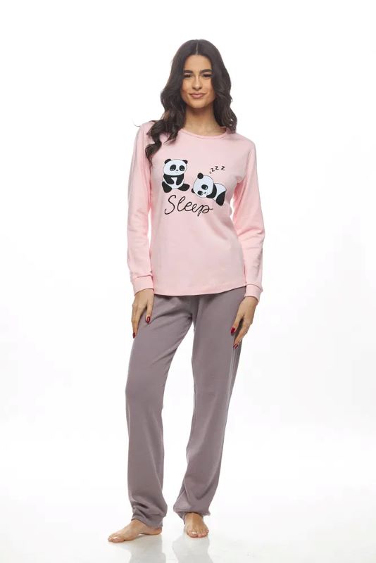 GALAXY γυναικεία πυτζάμα. Φέρτε γλυκύτητα και ζεστασιά στα βράδια σας με τη γυναικεία χειμωνιάτικη πυτζάμα SLEEP σε υπέροχη ροζ απόχρωση. Η μπλούζα διακοσμείται με το λογότυπο “SLEEP” και δύο χαριτωμένα πάντα, προσθέτοντας παιχνιδιάρικο και γλυκό χαρακτήρα στο νυχτερινό σου look. Φτιαγμένη από 100% αγνό βαμβάκι, είναι απίστευτα απαλή, φιλική προς το δέρμα και ιδανική για τις δροσερές χειμωνιάτικες νύχτες. Το άνετο παντελόνι ολοκληρώνει το σετ, εξασφαλίζοντας απόλυτη άνεση και ελευθερία κινήσεων.