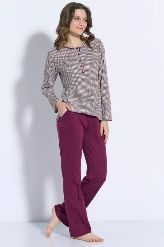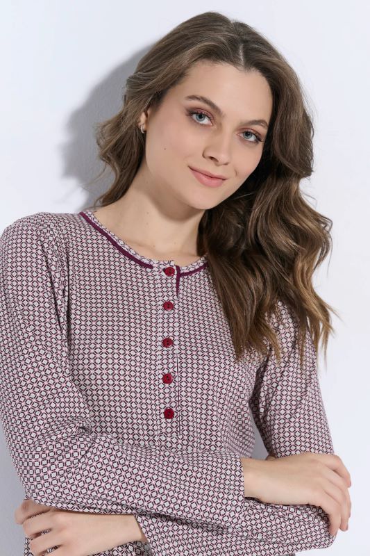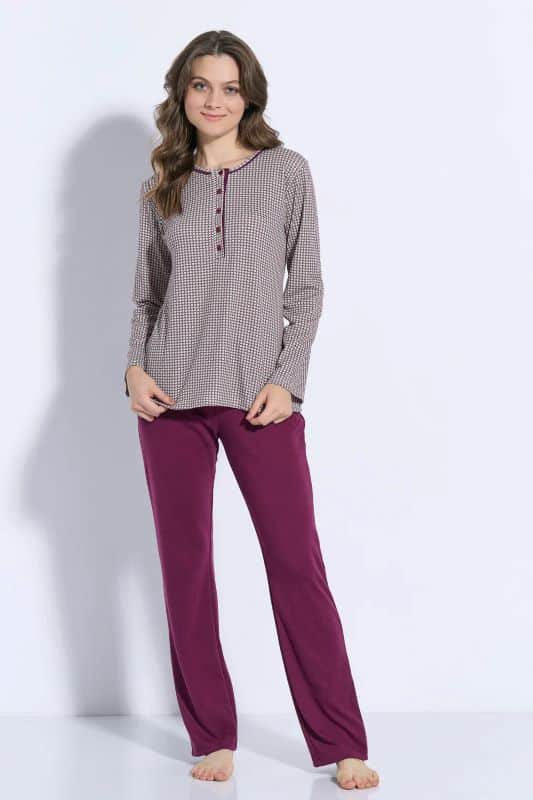 JEANNETTE γυναικεία πυζάμα άριστης ποιότητας, από 100% βαμβάκι, με εμπριμέ μπλούζα και μονόχρωμο παντελόνι, συνδυάζει ποιότητα, άνεση και στυλ.