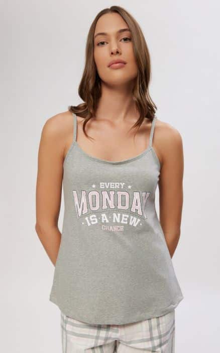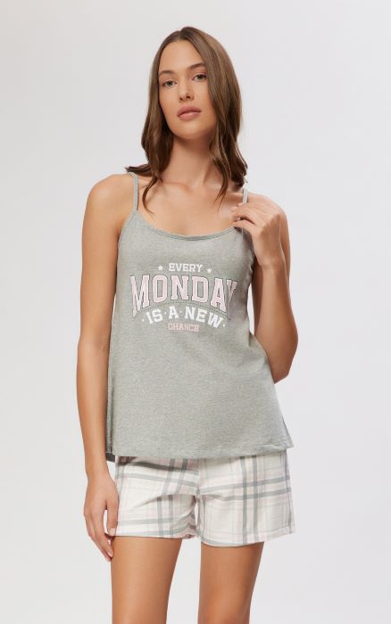 Minerva γυναικεία πυτζάμα σε δύο φανταστικές αποχρώσεις με τιράντα και σορτσάκι. Και φυσικά 100% βαμβακερή.