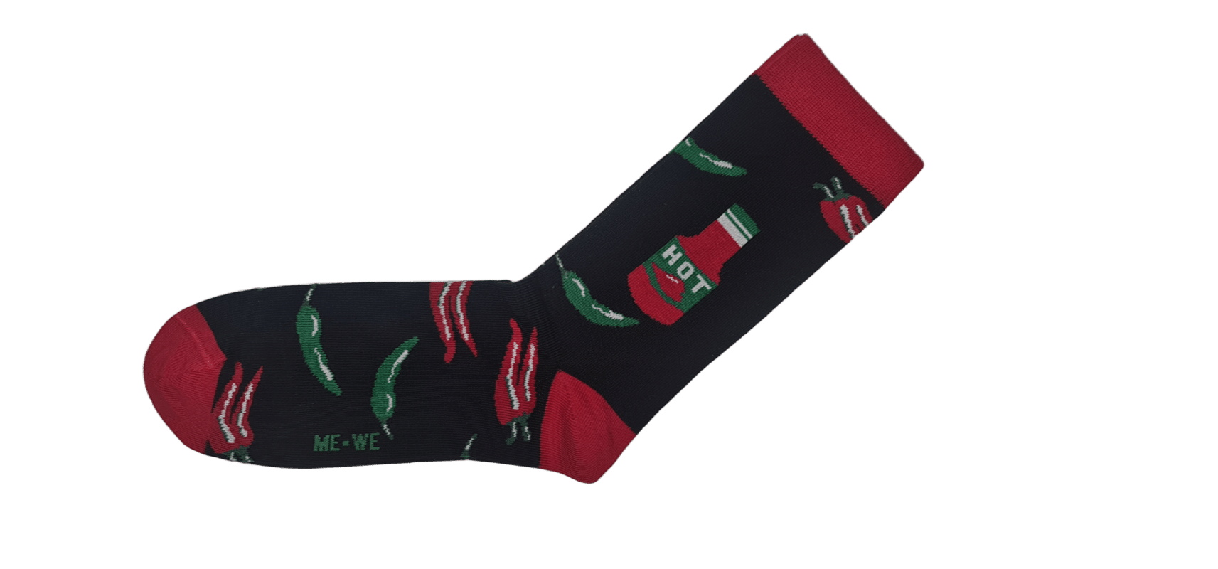 MEWE γυναικείς κάλτσες ψηλές με σχέδιο κόκκινες καυτερές πιπεριές για να δώσει στυλ στο συνολό σου. Η σύνθεση της βαμβακερή.