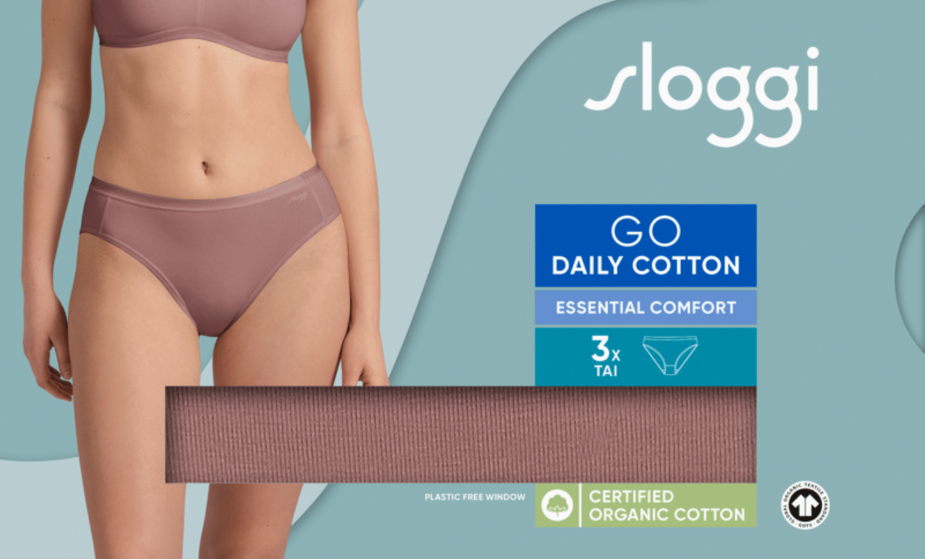 Sloggi γυναικεία σλιπ TAI της σειράς GO DAILY COTTON Essential COMFORT με απίστευτα απαλή αίσθηση. Σύνθεση: οργανικό βαμβάκι