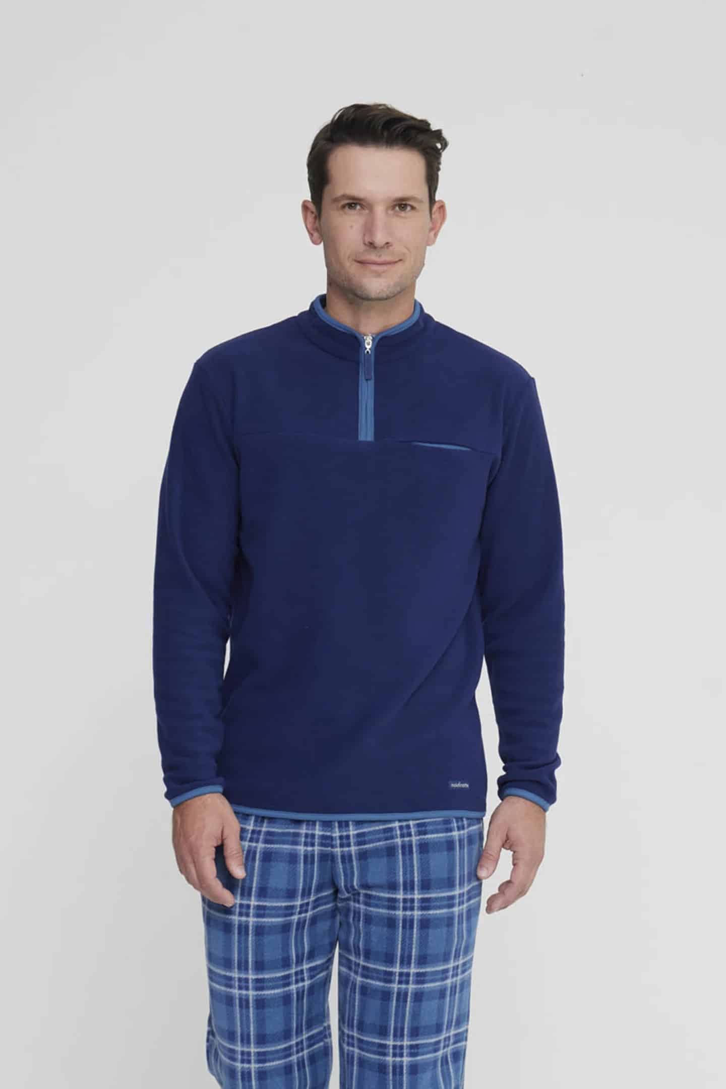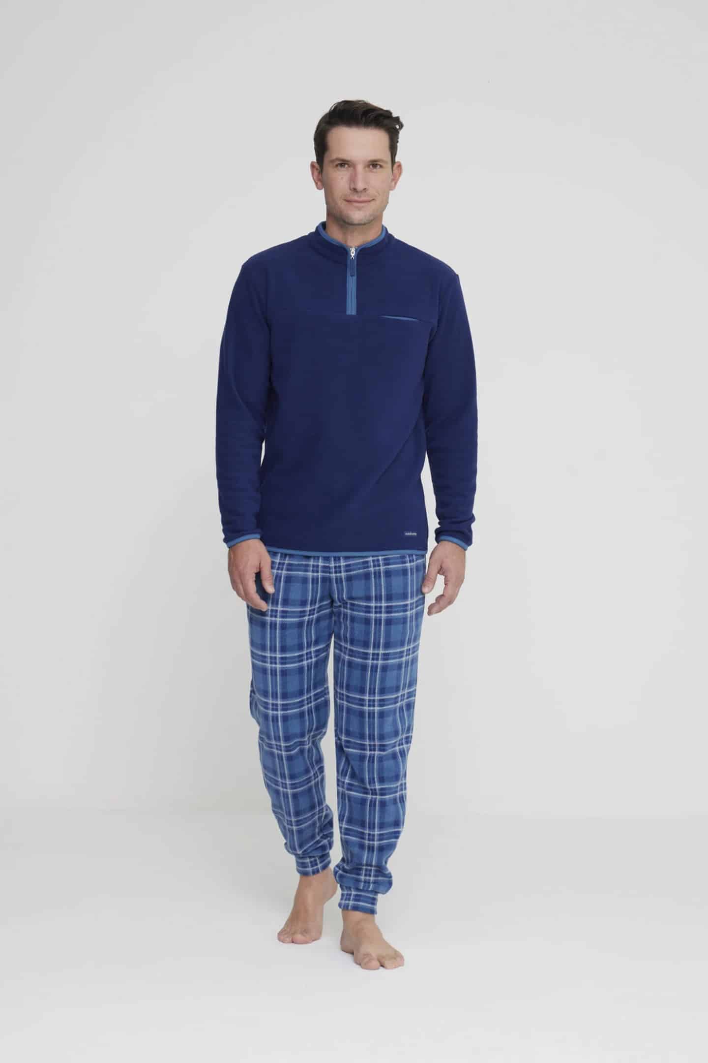 Nodinotte ανδρικές πιτζάμες Trish σε ζεστό fleece με πρακτικό φερμουάρ και εσωτερική τσέπη, παντελόνι με κομψό στάμπα ταρτάν και άνετες μανσέτες.