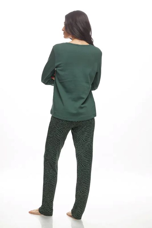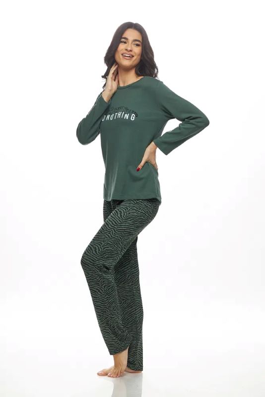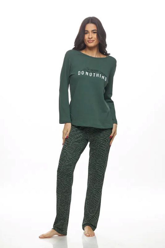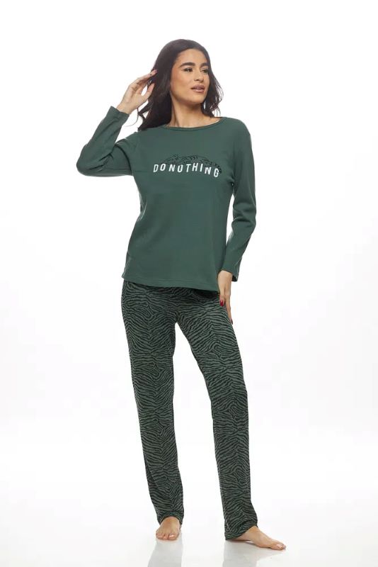 GALAXY γυναικεία πυτζάμα. Για εκείνες τις μέρες που το μόνο που θες είναι να… μην κάνεις τίποτα, αυτή η πυτζάμα είναι η τέλεια επιλογή! Με κυπαρισσί μπλούζα και εντυπωσιακό λογότυπο “DO NOTHING”, σου υπενθυμίζει πως η ξεκούραση είναι εξίσου σημαντική όσο και η δράση. Το παντελόνι με μοτίβο ζέβρας προσθέτει μια fun και stylish νότα στο look σου. Κατασκευασμένη από 100% φυσικό βαμβάκι, είναι εξαιρετικά απαλή και φιλική προς το δέρμα, ιδανική για απόλυτη άνεση τις κρύες νύχτες του χειμώνα.