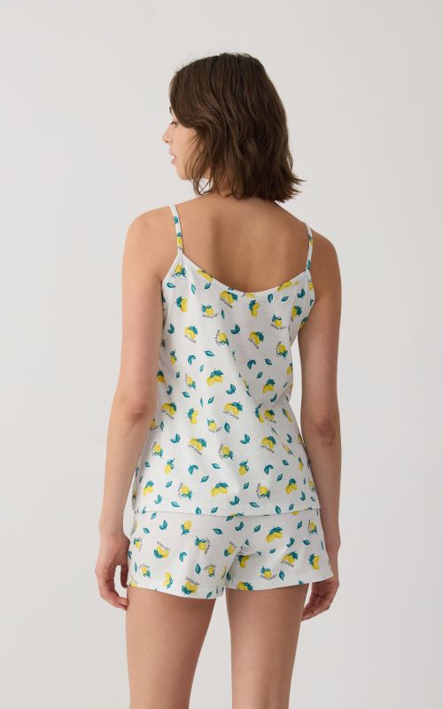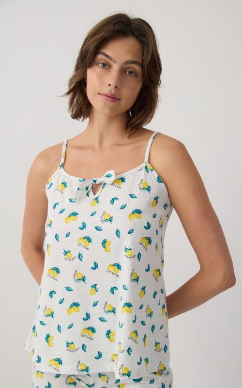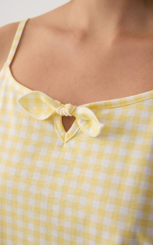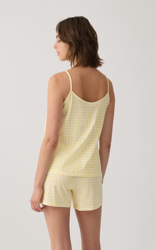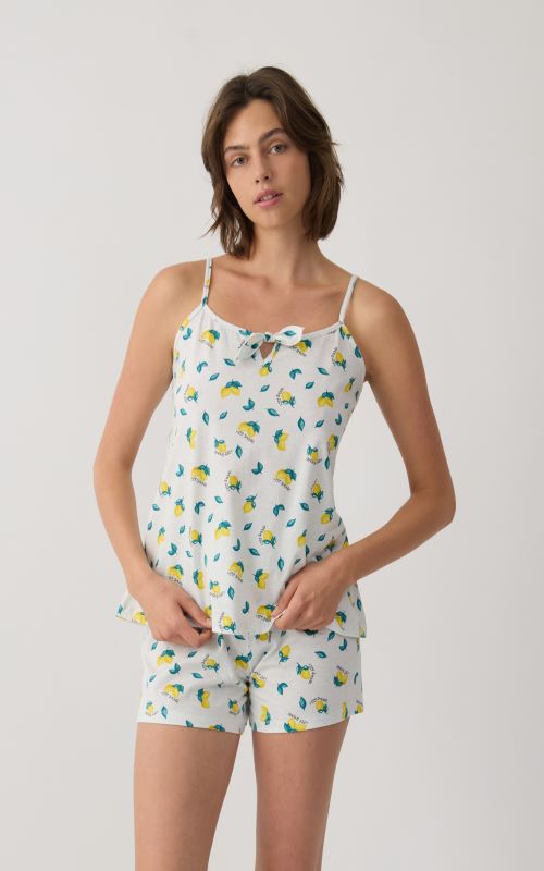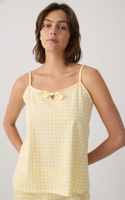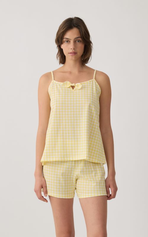 MINERVA Σετ πυτζάμα από 100% βαμβάκι εξαιρετικής ποιότητας με διακριτικό καρό τύπωμα σε δύο διαφορετικούς χρωματικούς συνδυασμούς. Το σετ αποτελείται από τοπ με λεπτές μπριτέλες και διακοσμητικό φιόγκο στο ντεκολτέ, καθώς και κοντό σορτς με λάστιχο στη μέση για άνετη εφαρμογή.